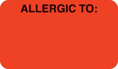 Allergy warning labels help improve patient care and serve as an alert to all staff, informing them of vital patient information 500 Fluorescent Red "Allergic To" labels per roll