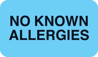 - 500 Light Blue "No Known Allergies" labels per roll