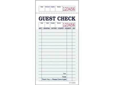 - Single copy guest checks come sequentially numbered, used to help waiters and cook staff