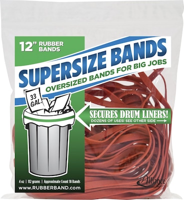 These large rubber bands offer versatile, reliable performance for both commercial and home use. Perfect for warehouses, they securely bundle large or oddly shaped items—eliminating the need for costly twine or strapping. They also work well to hold drum liners in trash bins or keep box flaps closed during picking and packing. At home, these extra-large elastics are great for bundling carpets, securing tarps over furniture, or storing bulky items together. Designed for reuse, they provide a durable and flexible solution for a wide variety of tasks. Alliance Rubber SuperSize Bands deliver the strength and stretch needed to tackle heavy-duty jobs with ease, making them a smart choice for multiple applications.