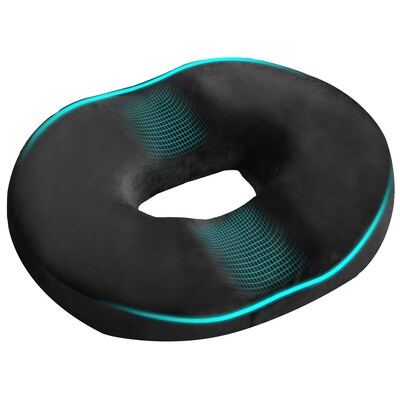 This Donut Cushion with Cover from AllSett Health is designed to ease discomfort associated with conditions like hemorrhoids, tailbone/coccyx sensitivity, post-birth recovery, and prolonged sitting. Made with premium memory foam, it provides gentle support where you need it most. Engineered to support proper posture and comfort, this Donut Pillow features a back slope for enhanced seating support, with indents for both buttocks and groin for balanced comfort. The design includes an indent for the tailbone, making it suitable for promoting proper alignment and comfortable seating. Ideal for home, office, vehicles, airplanes, or public transportation, this seat cushion features a non-slip base to ensure it stays securely in place on various surfaces, allowing for confident and comfortable use wherever you are. This cushion provides firm yet gentle support, making it ideal for extended sitting. Measuring 16 in. x 3 in., it is crafted from durable memory foam to maintain its shape and provide reliable, comfortable support over time. Featuring a soft, hypoallergenic velvet cover, this Donut Pillow is easy to maintain - simply remove the cover and machine wash as needed. Suitable for wheelchair users or general use, this cushion is crafted for everyday comfort and easy maintenance.