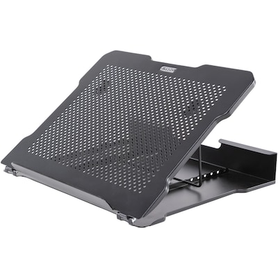 The Allsop 32147 Metal Art Adjustable Laptop Stand easily and securely raises your laptop screen to an ergonomic viewing height. The durable metal construction provides a stable platform that adjusts to 7 different positions, allowing users to choose the best screen angle for viewing and ergonomic comfort. Punched micro-dot patterns on the platform surface provide device ventilation, while a raised bottom edge ensures that laptops stay securely in place at any angle.