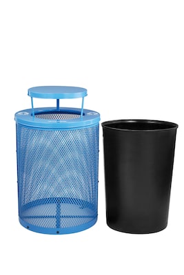 Alpine Industries 4460 Steel Mesh Outdoor Trash Can with Covered Top with Open Sides Lid, 36 Gallon, Blue (ALP4460-01-D)