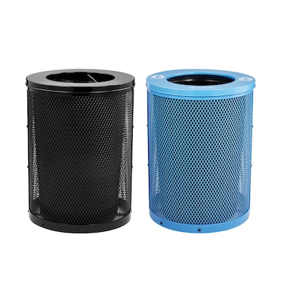 Alpine Industries 4460 Steel Mesh Outdoor Trash & Recycling Bin Combo with Flat Lid and Liner, 36 Gallon, Black/Blue