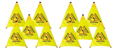 ANSI- and OSHA-compliant "Caution" signs to prevent accidents with the pop-open tri-corner design for ease of viewing