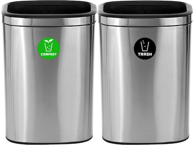 - Labels Included: Multiple sticker combinations that include trash, recycling, and compost labels to clearly identify waste streams