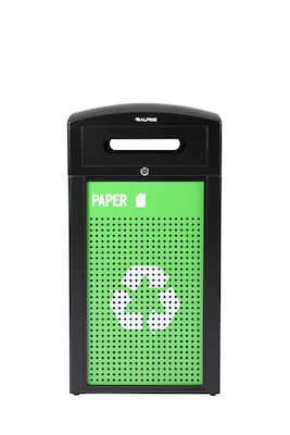 The Alpine Industries GS Series 40-gallon outdoor recycling bin delivers durable, secure recycling collection for high-traffic outdoor environments. Featuring a prominent recycling symbol, slot opening, and locking dome lid, this steel receptacle supports proper waste sorting while withstanding harsh weather conditions.
