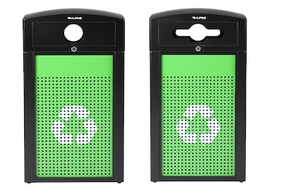 The Alpine Industries GS Series 80-gallon outdoor recycling combo station provides durable, high-capacity recycling collection for bottles, cans, paper, and mixed recyclables. Featuring two 40-gallon steel recycling bins with circular and slot openings, this all-weather station supports proper recycling separation in high-traffic outdoor environments.