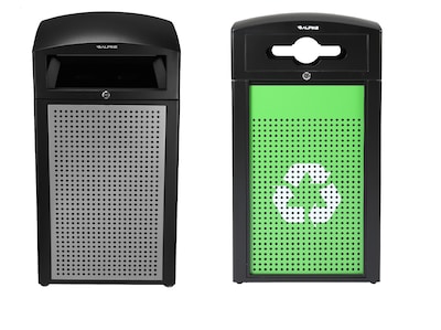Alpine Industries 40-Gallon All-Weather Recycling Bin: Durable, Secure, and Aesthetically Pleasing Waste Solution for Any Terrain The Alpine Industries GS Series 80-gallon outdoor trash and recycling combo station provides durable, side-by-side waste and recycling collection for high-traffic public spaces. Featuring two 40-gallon steel receptacles with locking dome lids, this all-weather station supports proper sorting while maintaining a clean, professional appearance.