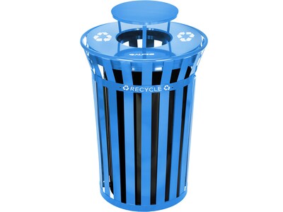 Alpine Industries Metal Commercial Outdoor Recycling Receptacle with Rain Bonnet Lid, 38 Gallon, Black/Blue (479-38-1-BLU)