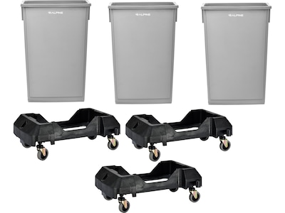 Alpine Industries Plastic Trash Can with Dolly, 23-Gallon, Gray, 3/Pack (ALP477-GRY-3PKD)