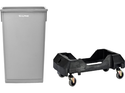 Alpine Industries Plastic Trash Can and Dolly, 23 Gallon, Gray (ALP477-GRY-PKD)