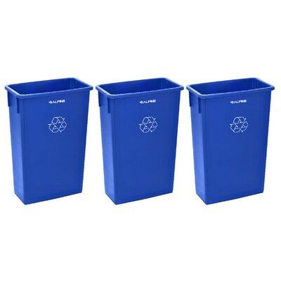 Alpine Industries Polypropylene Recycling Bin, 23 Gallon, Blue, 3/Pack (ALP477-R-BLU-3PK)