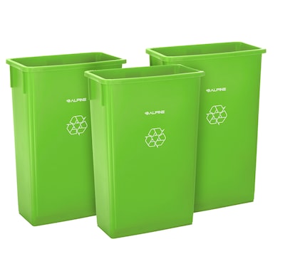 Alpine Industries Polypropylene Recycling Bin, 23 Gallon, Lime Green , 3/Pack (ALP477-LGRN-3)