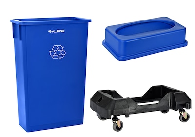 Alpine Industries Polypropylene Recycling Bin with Lid and Dolly, 23 Gallon, Blue (ALP477-BLU3-PKD)
