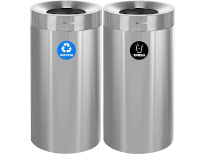 When equipping your business’s interior with waste receptacles, you want to be reassured it will survive constant daily use and also will aesthetically add to your environment. With our modern, multi-stream waste management 27 Gallon Stainless Steel Recycling and Trash Stations, you can be confident you’re getting an everlasting product that will help maintain cleanliness in your facilities. To help accommodate a more significant amount of recycling and trash, the 27-gallon capacity can fulfill your foot traffic demands. Included with every purchase is a recycling and trash sticker that will identify its intended purpose and be able to handle daily wear and tear. The vibrant colors of the stickers offer optimal visibility, assuring waste goes into the proper stream. In addition, the lids of the receptacles are created to display a seamless design that conceals trash bags but can efficiently be removed when needed. The large open top design of the lid will also allow precise disposal of all forms of waste. Our 27 Gallon Stainless Steel Recycling and Trash Stations will allow you to streamline waste collection in your high-traffic area while adding a touch of modern appeal.