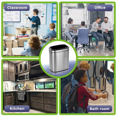 Alpine Industries 5.3 Gal. Stainless Steel Rectangular Liner Open Top Trash Can is not just a waste bin, it's also an additional source of style and decor that's suitable in any environment, with it's slim design and brushed stainless steel finish. Featuring a large diameter opening for waste disposal access, this stainless steel trashcan will keep your space clean of rubbish and make it simple for trash disposal on the go. It includes a rigid black plastic liner to easily remove trash and dump into trash bags or large disposals. Constructed of durable and antimicrobial stainless steel for long-lasting use. Set of 2.