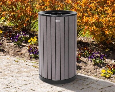 Durable 32-Gallon Steel Outdoor Commercial Trash Can with Open Lid – Ideal for High-Traffic Areas Outfitting your outdoor property with stable waste receptacles is imperative to eliminate litter. This Alpine round 32 gal. outdoor trash container with slatted recycled panels is a practical and resilient option. With an appealing exterior, this trash container consists of recycled plastic slats that add an earthy and natural aesthetic to its surroundings. Its authentic wood appearance makes it perfect for blending into walking trails, parks, recreational fields, and other wooded areas. To guarantee it can handle various types of climates, the steel frame has a weather-resistant powder coating, ensuring its longevity while upholding its quality. Its rather substantial holding capacity of 32 gal. will require less emptying by your maintenance staff, helping reduce worker strain. A rain bonnet is optionally available to better support your receptacle and prevent water and snow from flooding the liner. This receptacle is excellent for parks, resorts, walking trails, recreational fields, outside offices, schools, and so much more. It's a no-brainer to outfit your facilities with this superior trash container with all these fantastic features.