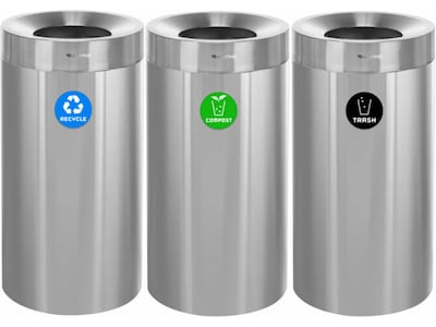 When equipping your business’s interior with waste receptacles, you want to be reassured it will survive constant daily use and also will aesthetically add to your environment. With our modern, multi-stream waste management 27 Gallon Stainless Steel Recycling, Trash, and Compost Stations, you can be confident you’re getting an everlasting product that will help maintain cleanliness in your facilities. To help accommodate a more significant amount of recycling, trash and compost, the 27-gallon capacity can fulfill your foot traffic demands. Included with every purchase is a recycling, trash and compost sticker that will identify its intended purpose and be able to handle daily wear and tear. The vibrant colors of the stickers offer optimal visibility, assuring waste goes into the proper stream. In addition, the lids of the receptacles are created to display a seamless design that conceals trash bags but can efficiently be removed when needed. The large open top design of the lid will also allow precise disposal of all forms of waste. Our 27 Gallon Stainless Steel Recycling, Trash, and Compost Stations will allow you to streamline waste collection in your high-traffic area while adding a touch of modern appeal.