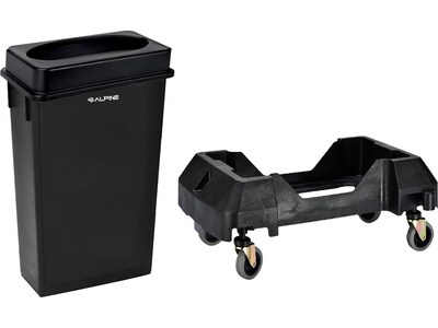 Alpine Plastic Trash Can with Dolly, 23-Gallon, Black (ALP477-BLK2-PKD)