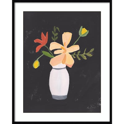 Amanti Art home decor products are made using traditional custom framing techniques that give you the quality you would expect from your local frame shop. A striking contrast between the dark background and the vibrant florals creates a captivating visual experience. The delicate petals of the flowers are elegantly arranged in a vase, exuding a sense of grace and beauty.