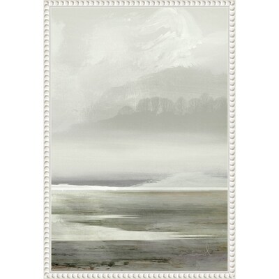 - The canvas is framed in the Sylvie Beaded White frame, a vintage float frame featuring a traditionally beaded ornate design with white coloring, a subtle woodgrain pattern, and dramatic depth.