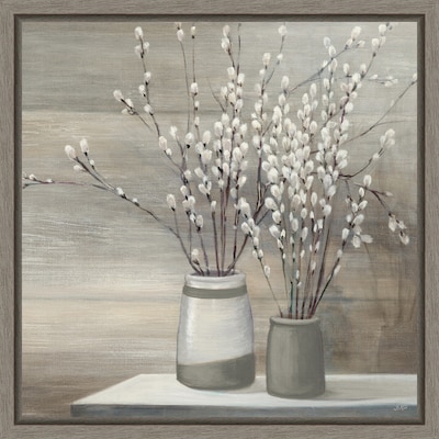 Amanti Art Pussy Willow Still Life Gray Pots Crop by Julia Purinton Framed Canvas Wall Art Print, 16" x 16" (A42674079000)