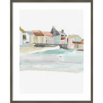Add some calmness to your favorite room when you hang up this simple yet captivating print of several coastal beach houses peacefully existing alongside an uncontrollable sea. The swirls of blue are sure to take your mind somewhere else.
