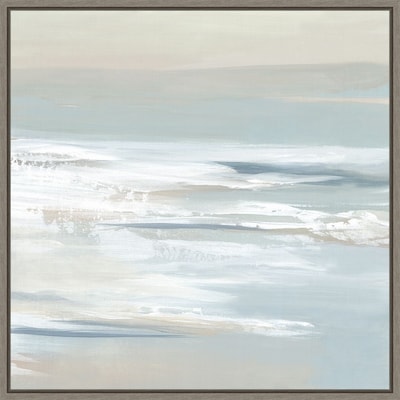 With its muted blues and grays and a hint of sandy beach, this painting gently transports the observer to a tranquil ocean landscape. The abstract waves will add a sense of calm to any room.