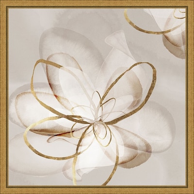 - The canvas is framed in the modern Sylvie Gold frame, featuring gold coloring, burnished detailing, and dramatic depth.