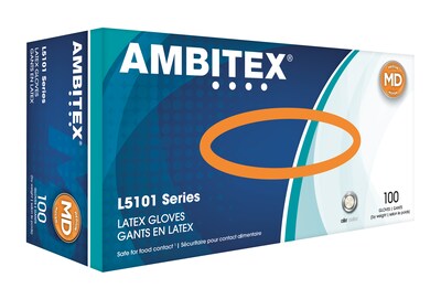 Ambitex L5101 Series Latex Food Service Gloves, Medium, 100/Box (LMD5101)