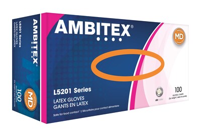 Ambitex L5201 Series Latex Food Grade Gloves, Medium, 100/Box (LMD5201)