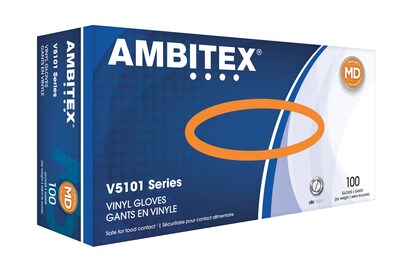 Ambitex V5101 Series Vinyl Food Service Gloves, Medium, Disposable 100/Box (VMD5101)