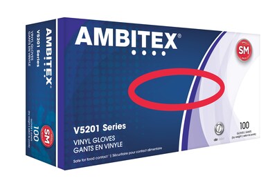 Ambitex V5201 Series Vinyl Food Service Gloves, Small, Disposable, 100/Box (VSM5201)