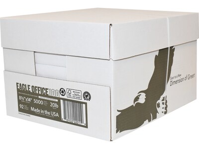 American Eagle 100% Recycled 8.5" x 14" Multipurpose Paper, 20 lbs., 92 Brightness, 500/Ream, 5 Reams/Carton (31550502CT)