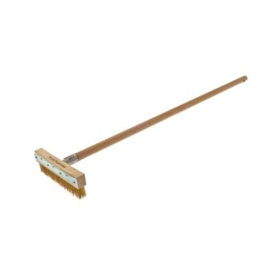 American Metalcraft 40" Oven brush with brass bristles and steel scraper is made of food safe wood for added durability. Brush penetrates grime and is ideal for commercial ovens.