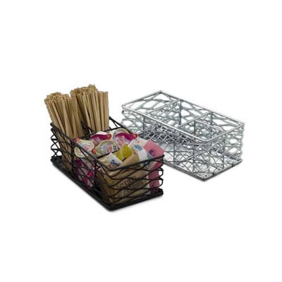 This contemporary bird nest-style chrome coffee caddy is perfect for small-scale coffee service. It features four convenient compartments for separating sugar, creamer, stirrers and much more. Its unique bird nest design allows for maximum visibility from all angles, regardless of how low your supplies become. Use this versatile coffee caddy at buffets, at elegant catered events, or for coffee or tea service in your employee break room or restaurant bar.