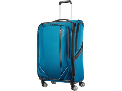 American Tourister Zoom Turbo Polyester 4-Wheel Spinner Luggage, Teal Blue (131401-1855)