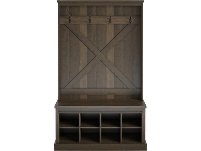 Ameriwood Knox County Entryway Bench with Hall Tree, Brown Oak (1359903COM)