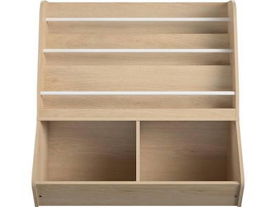 - Kids' book and toy storage bookcase made of particleboard in a blonde oak laminate finish