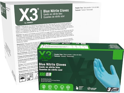 Ammex X3 Nitrile Gloves, Medium, Blue, 100/Box, 10 Boxes/Carton (X344100XX)