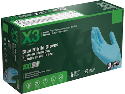 Ammex X3 Nitrile Gloves, X-Large, Blue, 100/Box (X348100)