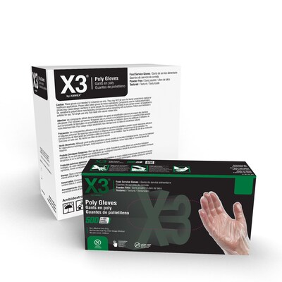 Ammex X3 Poly Food Safe Industrial Gloves, Latex Free, Large, Clear, 500/Box, 20 Boxes/Carton (PGLOVE-L-500XX)