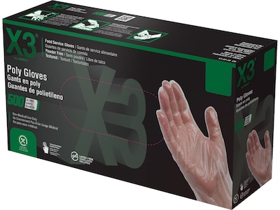 Ammex X3 Poly Gloves, Medium, Clear, 500/Box (PGLOVE-M-500)