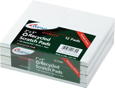 Ampad Evidence Recycled Scratch Pads, White, 3" x 5", 100 Sheets/Pad, 12/Pack