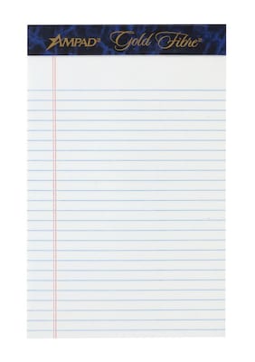 Ampad Gold Fibre Notepads, 5" x 8", College Ruled, White, 50 Sheets/Pad, 12 Pads/Pack (20054)