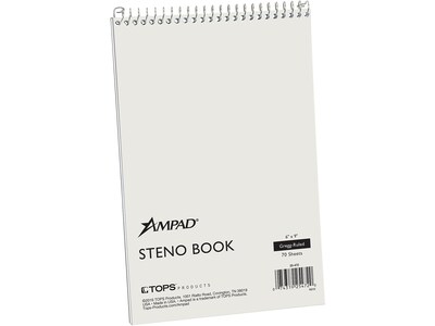 Ampad Steno Pad, 6" x 9", Gregg Ruled, White, 80 Sheets/Pad (TOP 25-774)