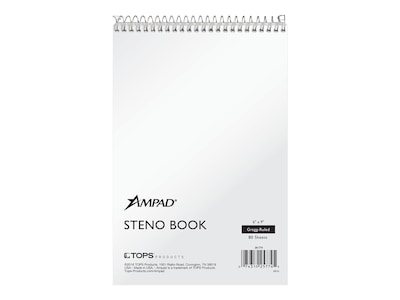 Ampad Steno Pad, 6" x 9", Gregg Ruled, White, 80 Sheets/Pad (TOP 25-774)