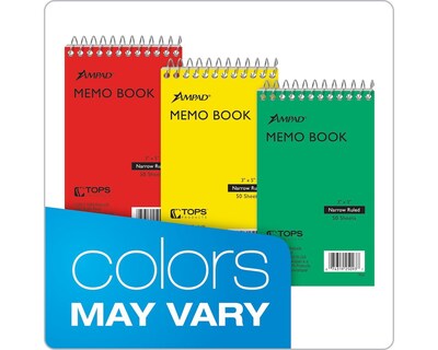 Enjoy portability with this narrow-ruled pocket notepad. With a compact design, this notepad is ideal for slipping into your pocket, purse or folder, while the top-bound spiral format lets you flip through past notes easily. This sturdy Ampad wire-bound notepad comes with 50 sheets of narrow-ruled paper, providing plenty of space for personal reflection, brainstorming, and other notes. This is a single notebook that may ship in a variety of colors. The color is chosen at random, no requests.