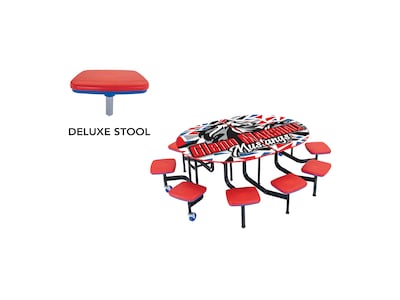 AmTab Ocean Waves Mobile Cafeteria Table w/ 12 Stools, 35" x 121", Assorted Colors (MSOWT1012)